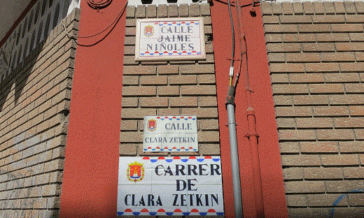 La marcha dio comienzo en la c/Clara Zetkin, ahora con el nombre del fascista Jaime Niñoles, con la puesta de placas simbólicas con su nombre y una intervención denunciando los hechos.