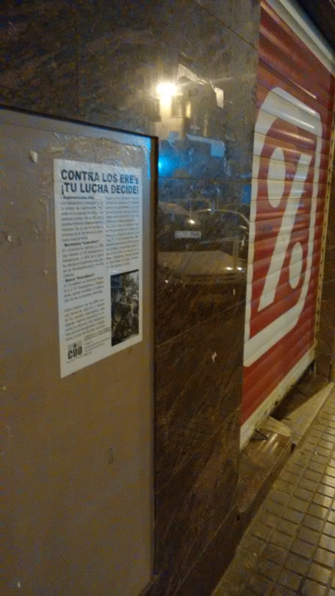 El pasado 9 de abril, los Comités para la Unidad Obrera del Baix Vinalopó realizaron una pegada de carteles por toda la ciudad de Elche, denunciando los múltiples EREs que se han anunciado recientemente en la comarca.