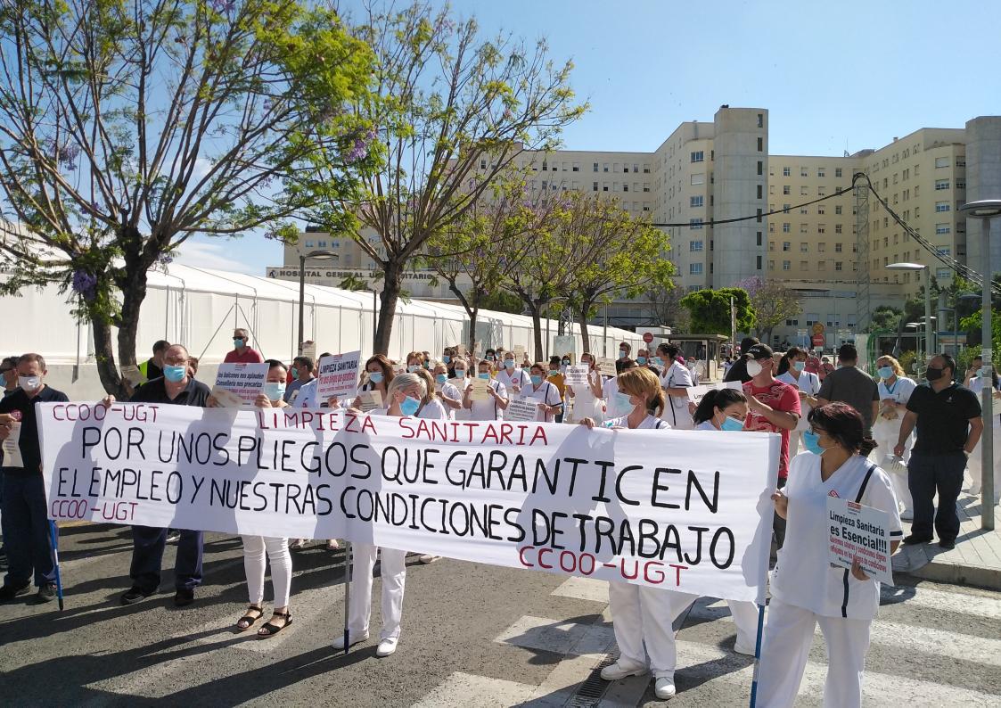 Hoy 4 de junio de 2020, la plantilla del servicio de limpieza del Hospital General Universitario de Alicante se ha concentrado a las puertas del Hospital General Universitario de Alicante en el marco de las movilizaciones organizadas en el País Valencià como respuesta a los pliegos de contratación de la limpieza sanitaria publicados por la Conselleria de Sanitat de la Generalitat Valenciana (GVA).