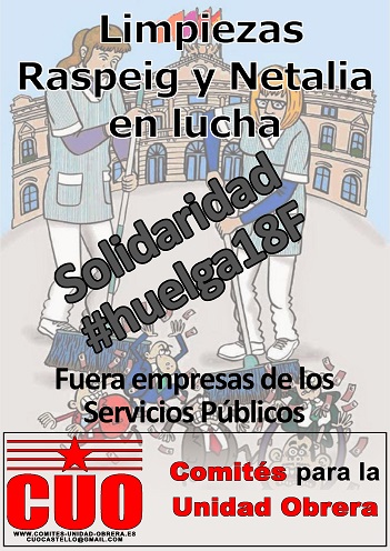 Las plantillas de Netalia y Limpiezas Raspeig, ambas empresas con la misma sede social, han convocado una huelga indefinida que dará comienzo el 18 de Febrero.