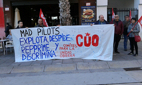 En la concentración, se gritaron consignas como "que visca la lluita de la classe obrera", “Mad pilots, explota, despide y discrimina”, “sobran explotadores y no trabajadoras”, entre otras.