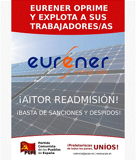 El PCPE hace un llamamiento para que acuda el que pueda al juicio que se celebrará el jueves 4 de octubre 2018 a las 9:45 en el Juzgado de lo Social núm. 6 de Valencia.