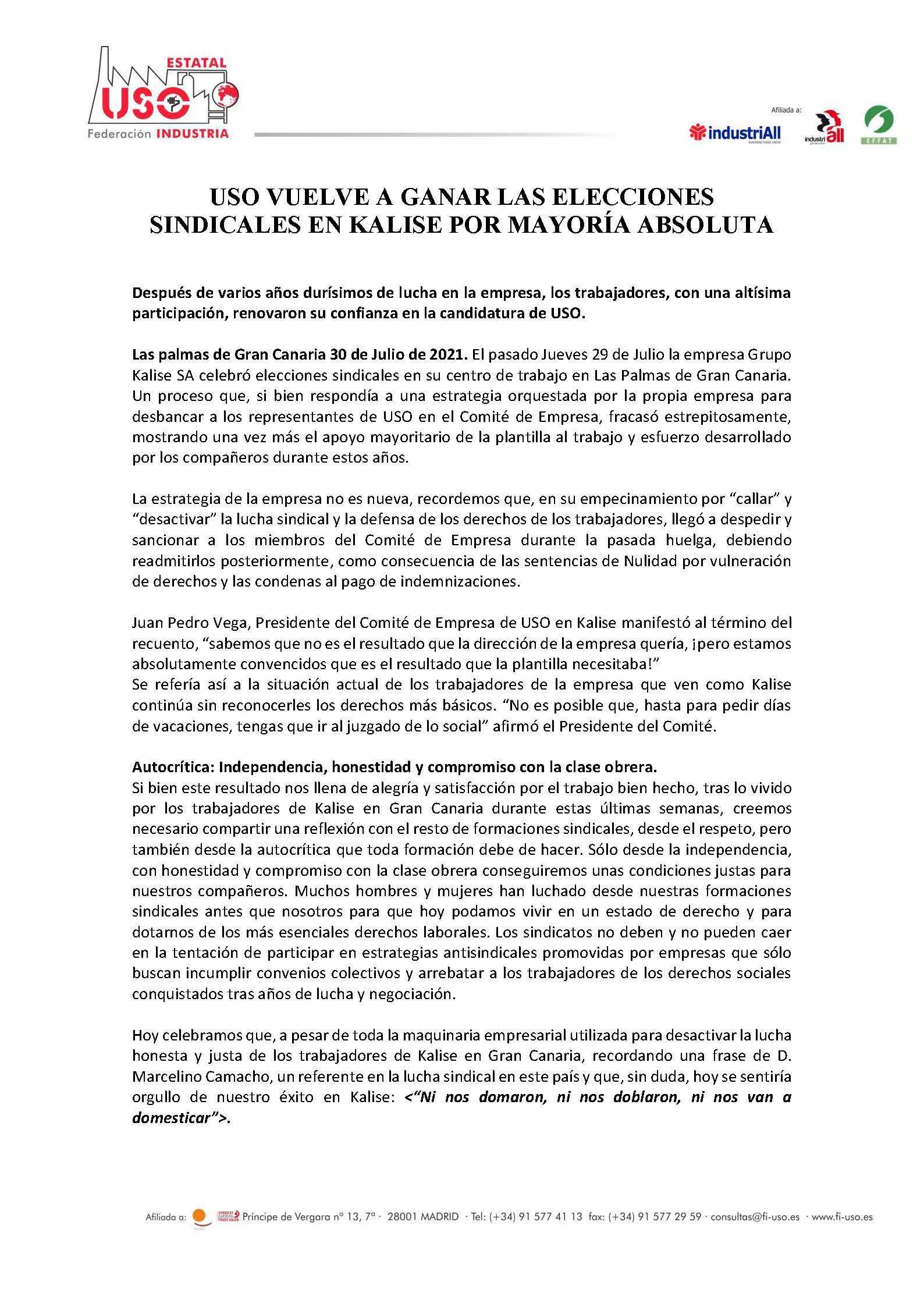 ¡LE PIQUE A QUIEN LE PIQUE la candidatura de USO para las elecciones sindicales en la empresa de helados KALISE, ha ganado por mayoría el pasado 29 de julio!