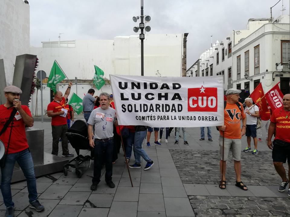 Entre los sindicatos convocantes USO, Intersindical Canaria, Alternativa Sindical, UGT y CCOO, se sumaron organizaciones como los CUO así como el apoyo de otros colectivos obreros también en lucha.